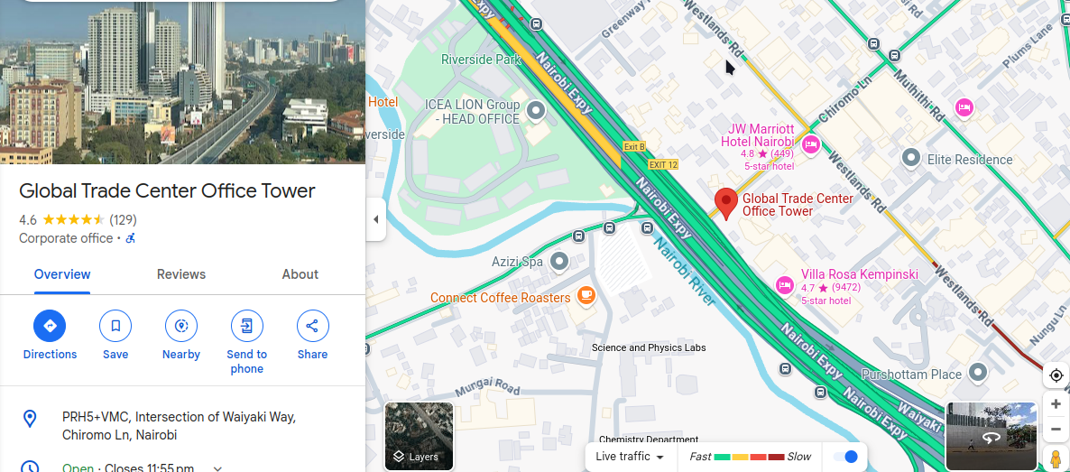 PRH5+VMC, Intersection of Waiyaki Way, Chiromo Ln, Nairobi